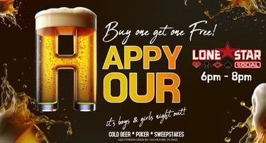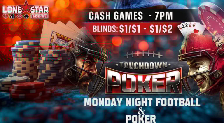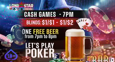 Are you ready to test your skills, bluff your way to victory, and win BIG? Look no further! Lone Star Social invites you to join us for an unforgettable gaming experience. Whether you're a seasoned pro or a beginner, there's a seat at the table just for you. Cash games and Poker Tournaments.